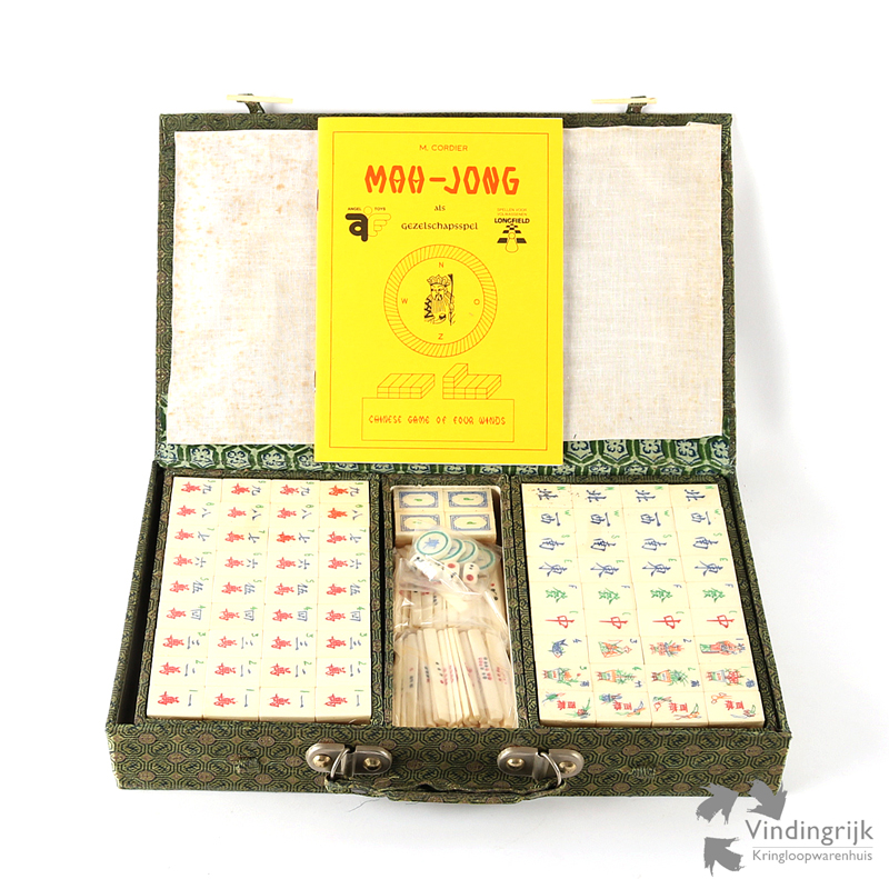 Authentiek Mahjong spel. De achterkant van de stenen is gemaakt van bamboe, de voorzijde met de symbolen is van been.