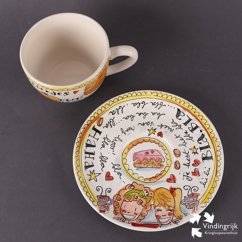 Blond Amsterdam beschildert voornamelijk persoonlijke theepotten, mokken en schilderijen. Hun gedeelde passie voor vrolijk en kleurrijk servies groeide uit tot een bont en gevarieerd assortiment. Het doel is om mensen met hun producten vrolijk en blij te maken. Dit is duidelijk te zien aan het handschrift van Blond wat je herkent aan de grappige en kleurrijke illustraties met een knipoog.