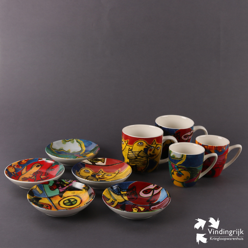 Bestaande uit: 2 bekers, 2 kopjes en 4 schaaltjes.