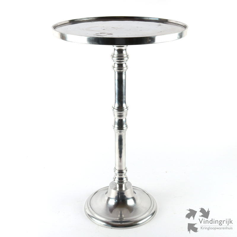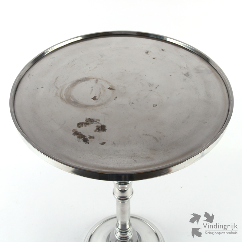 Het blad heeft wel de nodige gebruikssporen maar de tafel is nog prima bruikbaar voor in huis of in de tuin/terras.