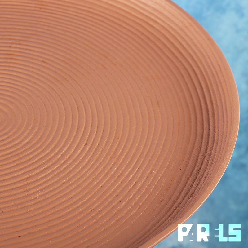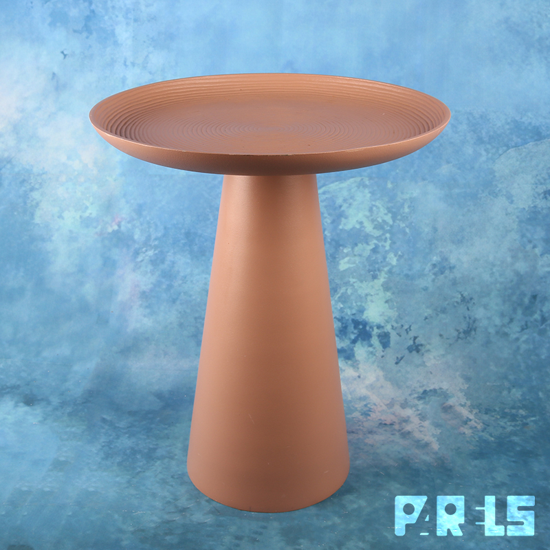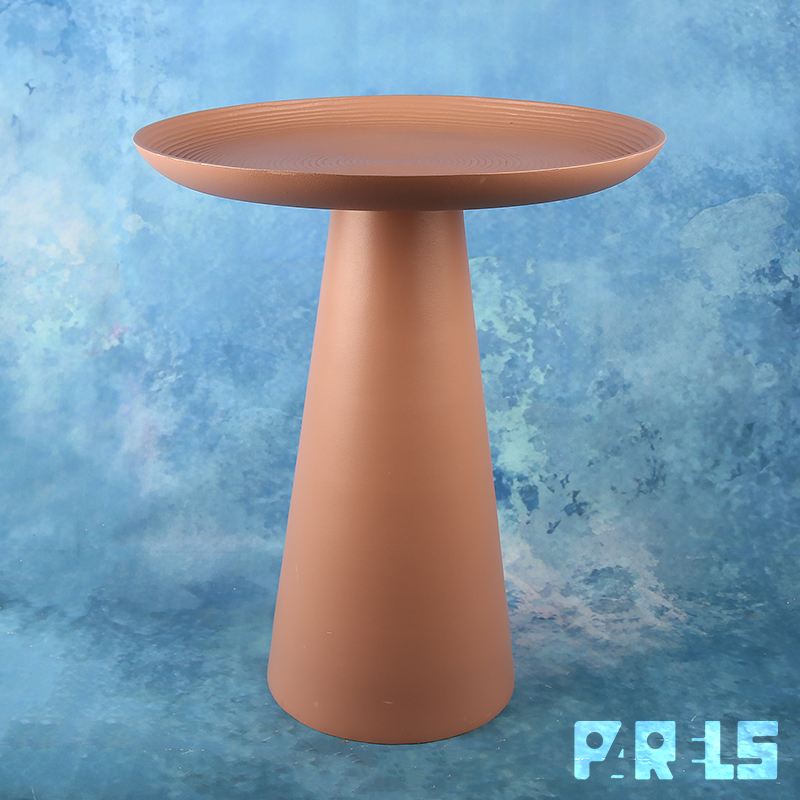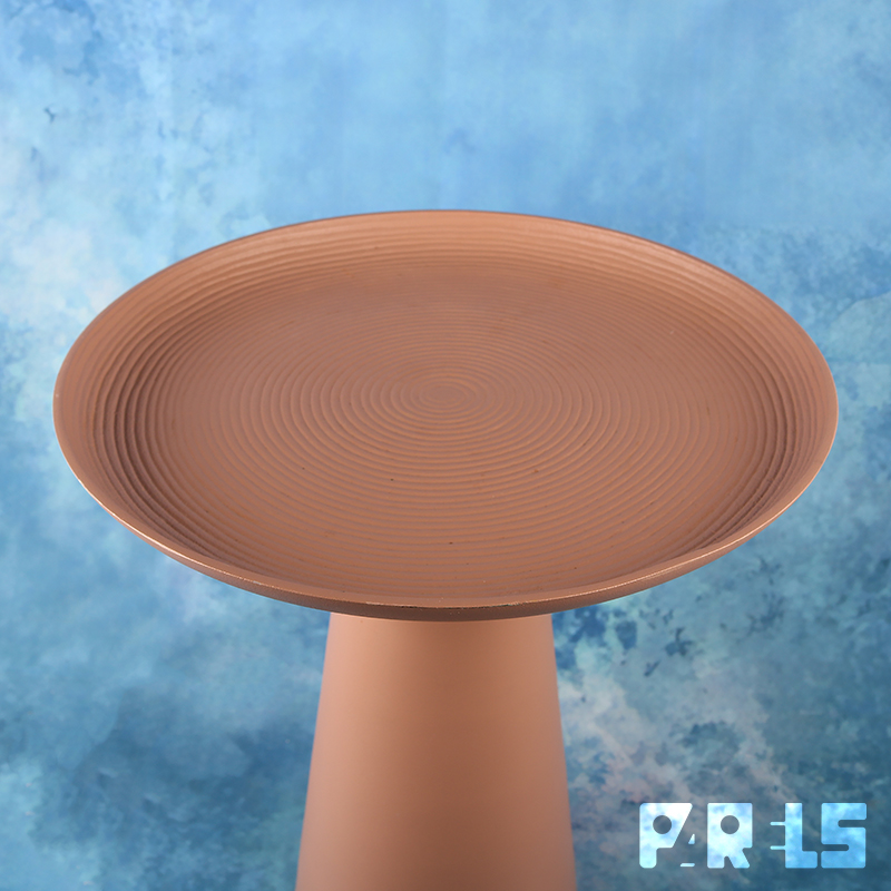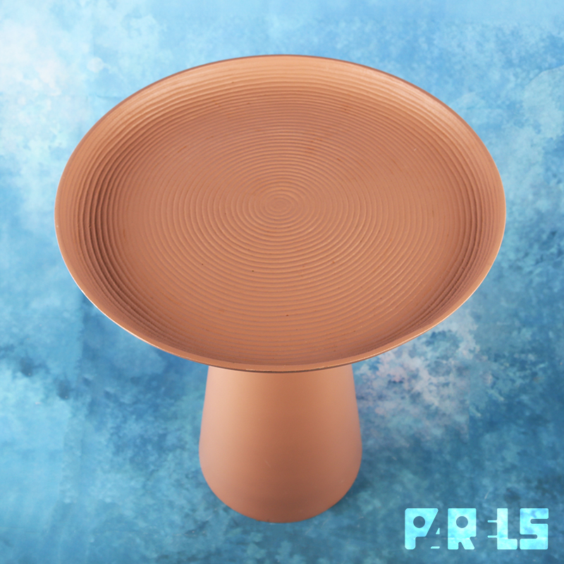 Deze stabiele bijzettafel, type Ringar, is een modern metalen, pion-vormig tafeltje dat helemaal in één kleur (mat oudroze) is uitgevoerd. Opvallend is ook de mooie en subtiele structuur die in de matte poedercoating van het blad is opgenomen. Het is een cirkelpatroon dat in kringen steeds groter wordt, alsof je een steen in het water hebt gegooid. Ook leuk om bijvoorbeeld als plantentafeltje te gebruiken.