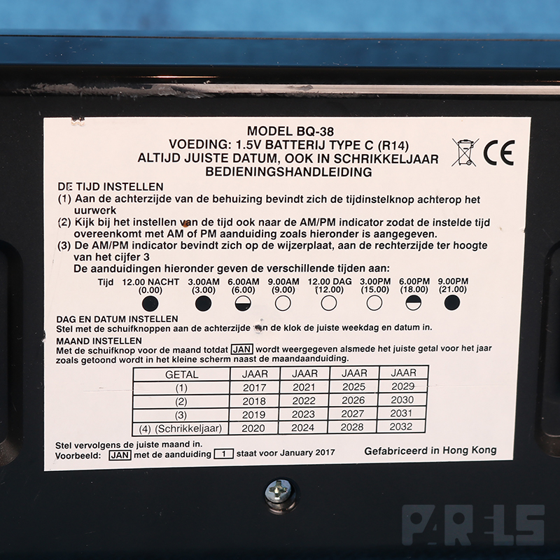 De klok is van het merk Twemco, modelnummer BQ-38. (nieuwprijs: vanaf €125,-).