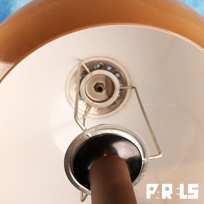De succesvolle Dijkstra lampen uit de jaren 70 kenmerken zich vooral door de acryl plexi globes, meestal in een beige kleur. Deze kappen lichten zeer mooi op en zorgen voor een aparte sfeer.