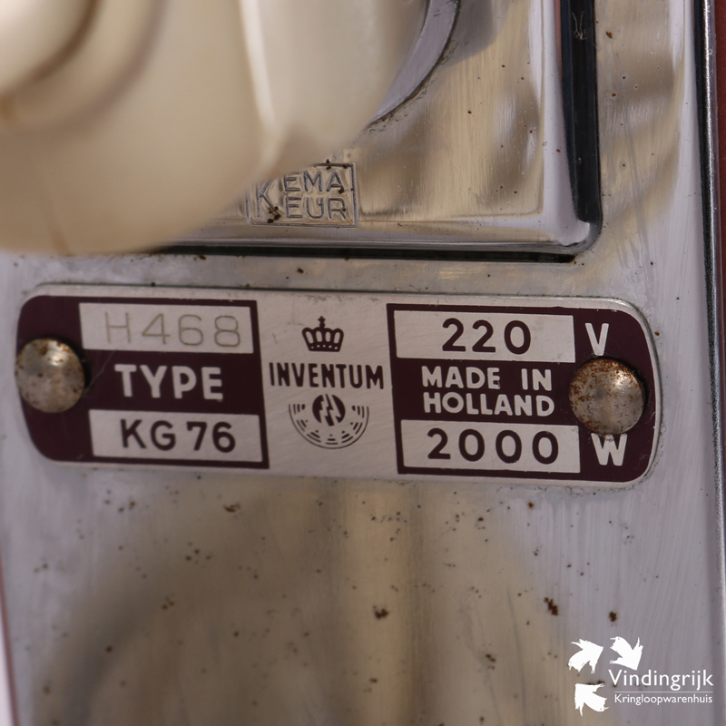 Het is een elektrische kachel van het bekende merk Inventum uit Bilthoven, type KG76 met een vermogen van maar liefst 2000 Watt.