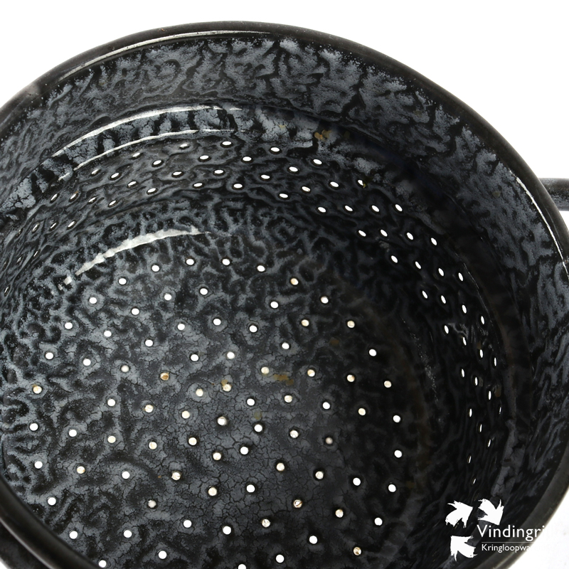 Vintage stoompan met grijs gewolkt emaille.