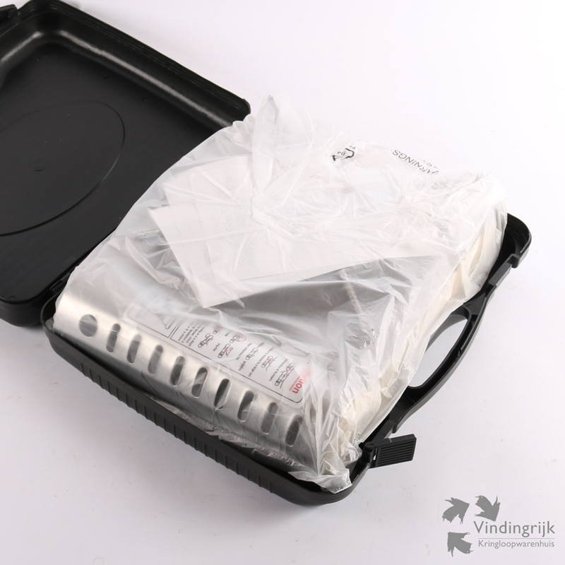 Dit handige tafelmodel zit in een bijpassend koffertje met alle toebehoren, exclusief gasbusje.