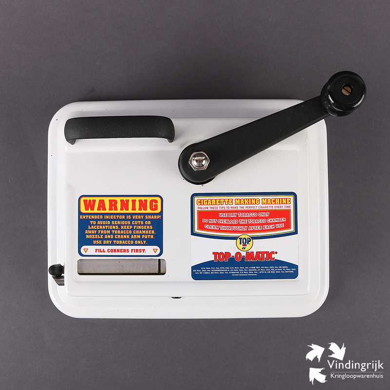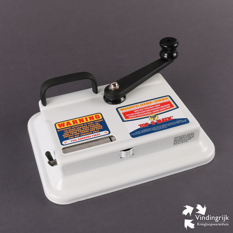 Nieuwe degelijke en betrouwbare sigarettenstopper van Top-O-Matic. Gemaakt van metaal en uitgevoerd met stevige zwenkhendel en solide handvat. Met deze zwaar uitgevoerde handmatige hulzenvuller van Top-O-Matic maak je moeiteloos grote aantallen sigaretten, hij kan overweg met zowel gewone filterhulzen (King size) alsook met XL hulzen.