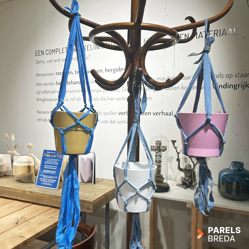 Wat doe jij met oude T-shirts, dekbedovertrekken en denim stoffen? Je kunt deze natuurlijk in de textielbak gooien en dan wordt het gerecycled. Maar je kunt er ook zelf creatief mee aan de slag door er garen van te maken. In deze workshop maken we van deze stoffen een mooie plantenhanger!